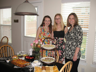 Yesterday we had Melissa's bridal shower at my house. Here is Melissa about to open all of her gifts! Here is Melissa, Nancy, Paula (Melissa's mom), and Me with the yummy cake. Lana, Melissa and me... we are all really excited about the wedding. Only about one month to go!